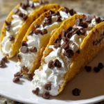 Lastly, the fun part! Sprinkle a handful of chocolate chips over the filled tacos and add a generous dollop of whipped cream on top. This finishing touch not only makes your tacos taste heavenly but also gives them a lovely and inviting look, perfect for impressing your family and friends.