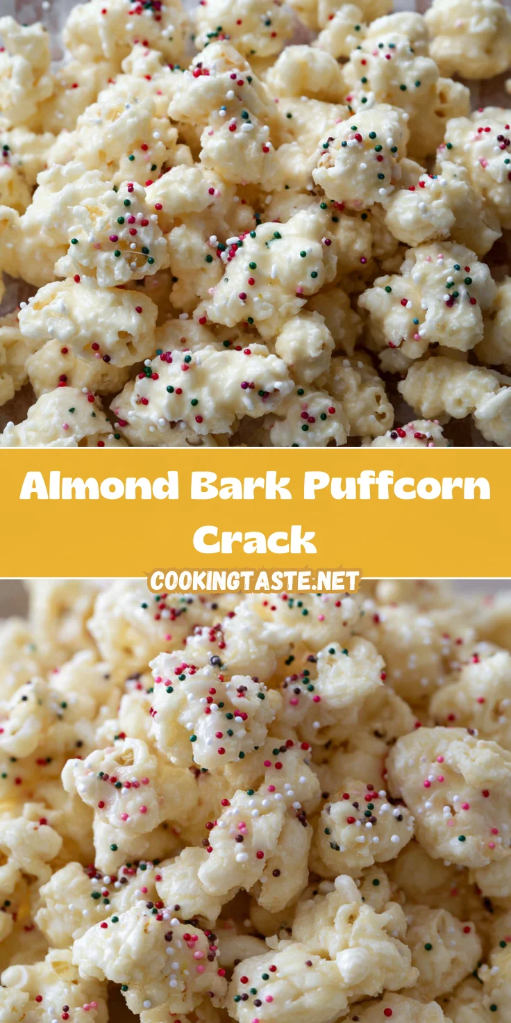 Almond Bark Puffcorn Crack is a sweet and crunchy treat that combines the deliciousness of almond bark with puffed corn, topped off with colorful sprinkles.