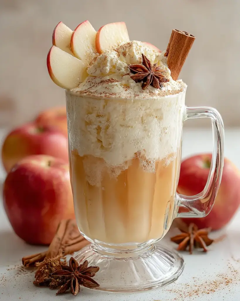Let’s make this float a true showstopper! Top it off with a sprinkle of cinnamon sugar. Then, add a few red apple slices for color. Feeling fancy? Place a cinnamon stick and a whole star anise for that posh vibe. You can even hang a slice of apple on the rim for a great visual. Trust me, it’s all about the presentation!