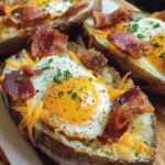 Baked Potatoes Egg Bacon isn’t just a recipe; it’s a delightful way to transform your breakfast routine. The combination of fluffy potatoes, creamy filling, crispy bacon, and that luscious egg on top creates a feast for both the eyes and the taste buds. Each bite feels like a little indulgence, reminding me of family gatherings and joyful mornings. Plus, it’s a great way to utilize leftovers and keep everyone satisfied. So, gather your loved ones and dive into this savory treat—you’ll cherish the moments spent around the breakfast table, sharing laughter and delicious food together!