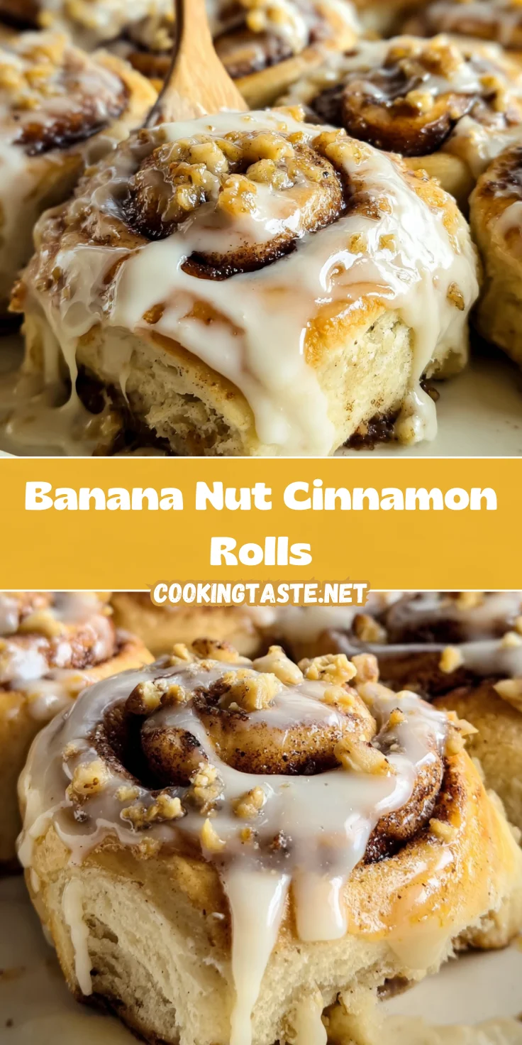 Indulge in these delicious banana nut cinnamon rolls, filled with sweet bananas, combined with walnuts, and topped with a creamy icing.