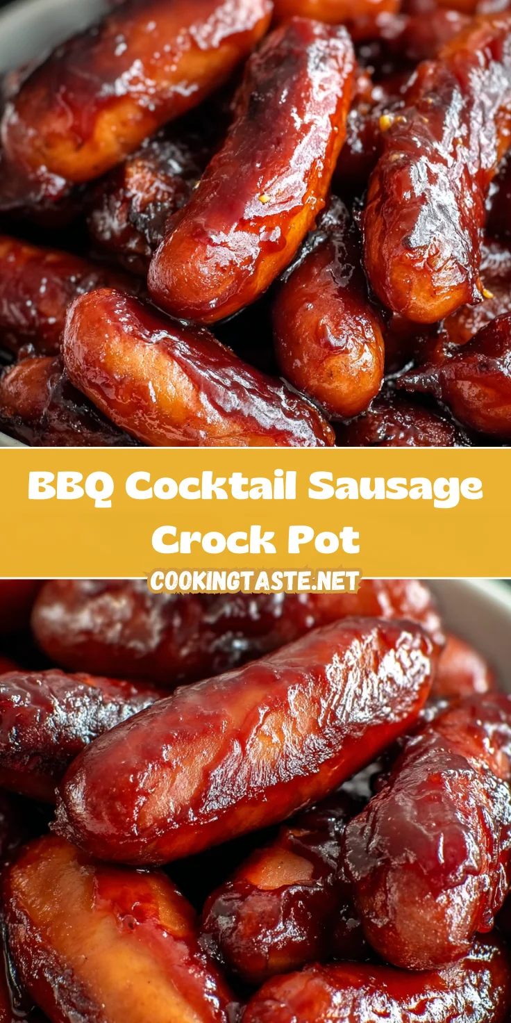 A delicious and easy recipe for BBQ cocktail sausages cooked in a crock pot, perfect for parties or gatherings.