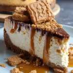 Before serving, we need to make it look as good as it tastes. Carefully remove your cheesecake from the springform pan using the overhanging parchment paper. Melt that additional Biscoff cookie butter in the microwave for a few moments until it’s pourable. Drizzle it generously over the cheesecake, then sprinkle on the crushed Biscoff cookies for that crunch factor. Let it chill for another 10 minutes to set the topping before slicing and enjoying!