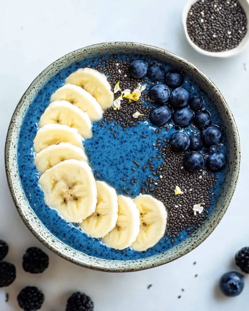 A delicious and nutritious Blue Smoothie Bowl, perfect for a healthy breakfast or snack.