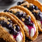 Blueberry Cheesecake Taco Shells are a delightful dessert that combines the flavors of blueberry pie and cheesecake in a fun taco shell presentation.