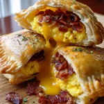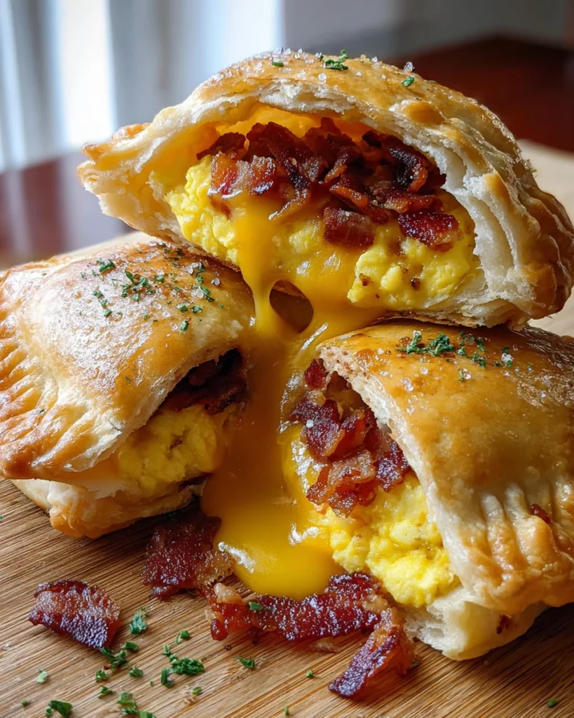 Breakfast Hand Pies Bacon Egg are delicious portable pastries filled with a savory mixture of eggs, bacon, and cheese.