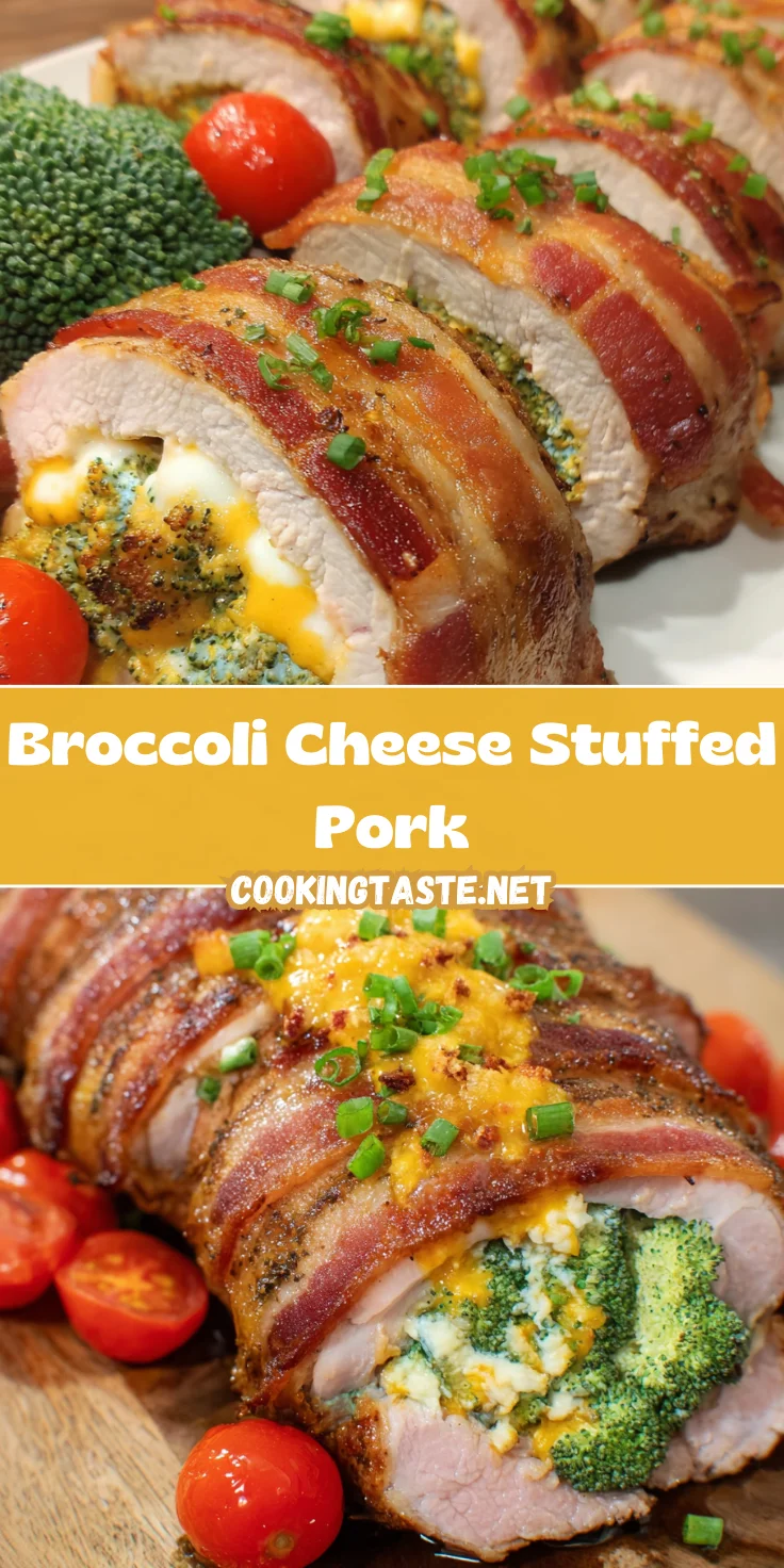 A deliciously unique recipe featuring tender pork stuffed with a creamy broccoli and cheddar filling, wrapped in crispy bacon.
