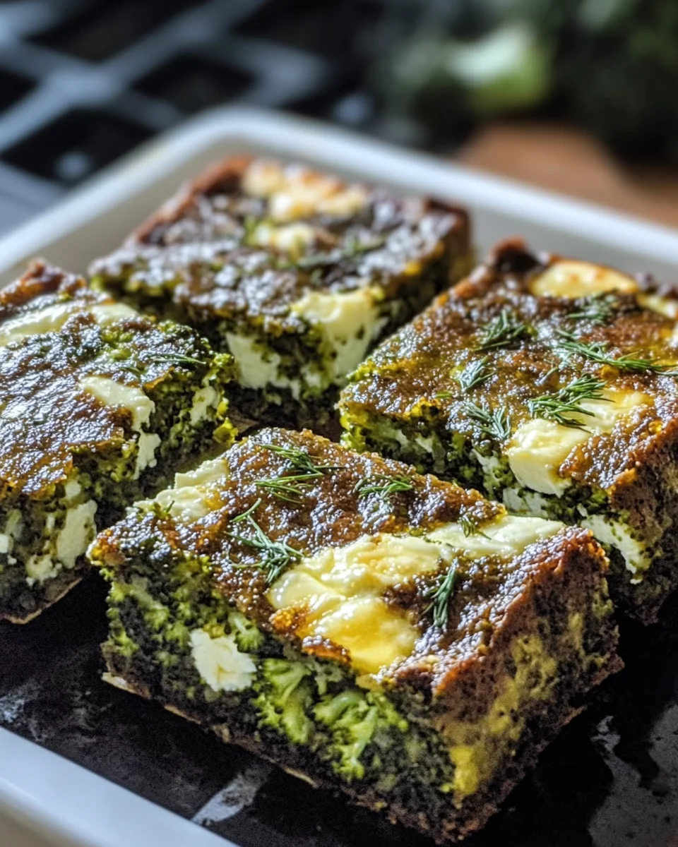 Once baked, let the brownies cool in the pan for about 10 minutes. This cooling time helps them set, making slicing easier. After that, cut them into squares and serve warm or at room temperature. Enjoy your savory Broccoli and Feta Brownies!