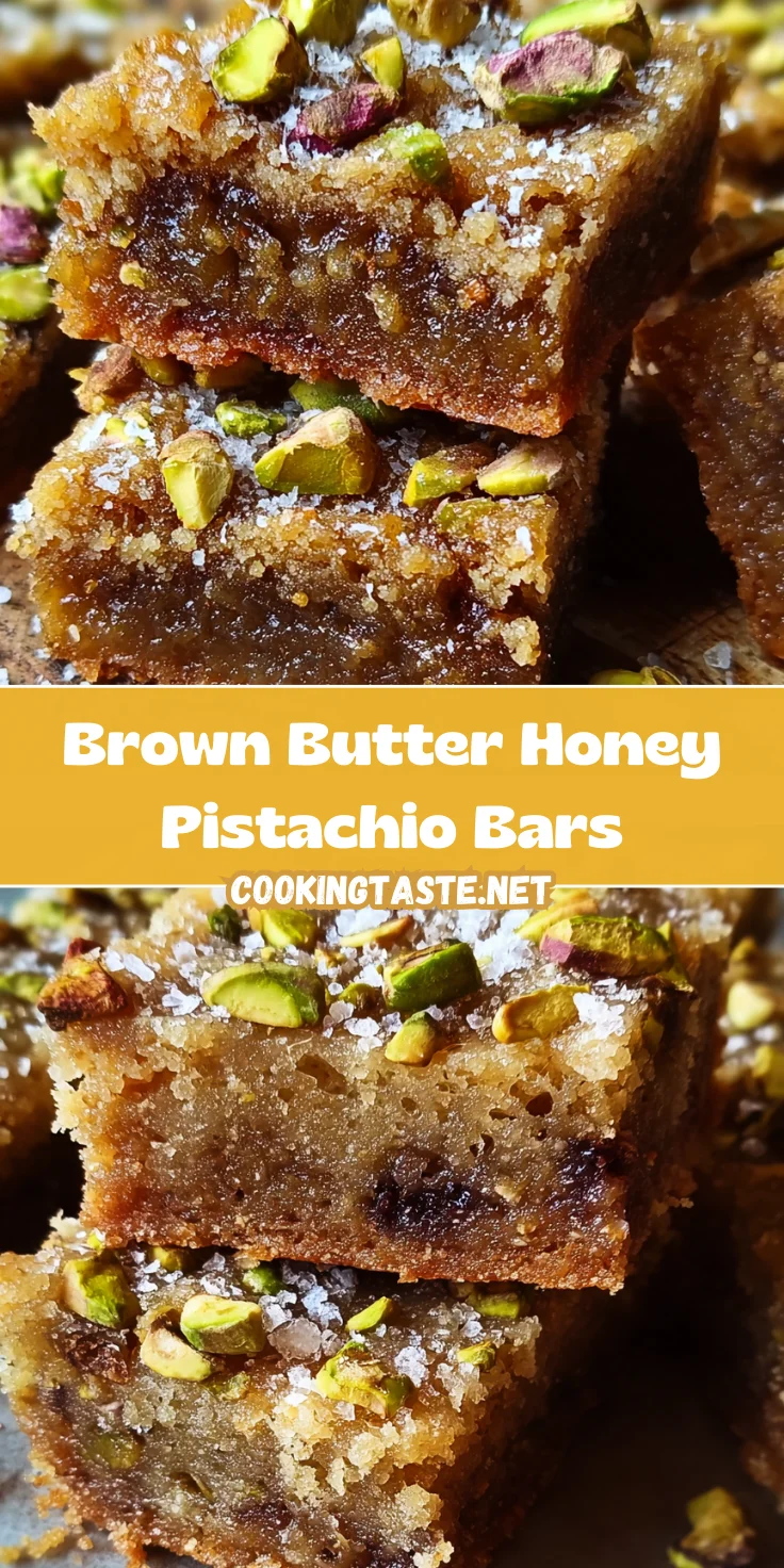 Brown Butter Honey Pistachio Bars are a deliciously chewy treat with a rich, nutty flavor from the browned butter and the crunch of pistachios, sweetened with honey.