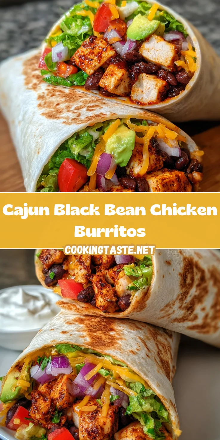 Cajun Black Bean Chicken Burritos are a delicious and hearty meal combining seasoned chicken with a flavorful black bean filling, topped with fresh ingredients and wrapped in a soft tortilla.