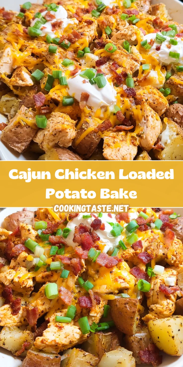 Your Cajun Chicken Loaded Potato Bake is almost ready to impress! Once it’s out of the oven, top it with some freshly chopped green onions and dollops of sour cream. This adds not just color, but a fresh crunch and creamy finish. Serve it hot, and watch your loved ones dig in!