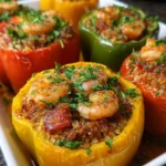 Cajun-Style Stuffed Bell Peppers are a flavorful dish filled with a zesty mixture of andouille sausage, shrimp, and vegetables, all baked to perfection.