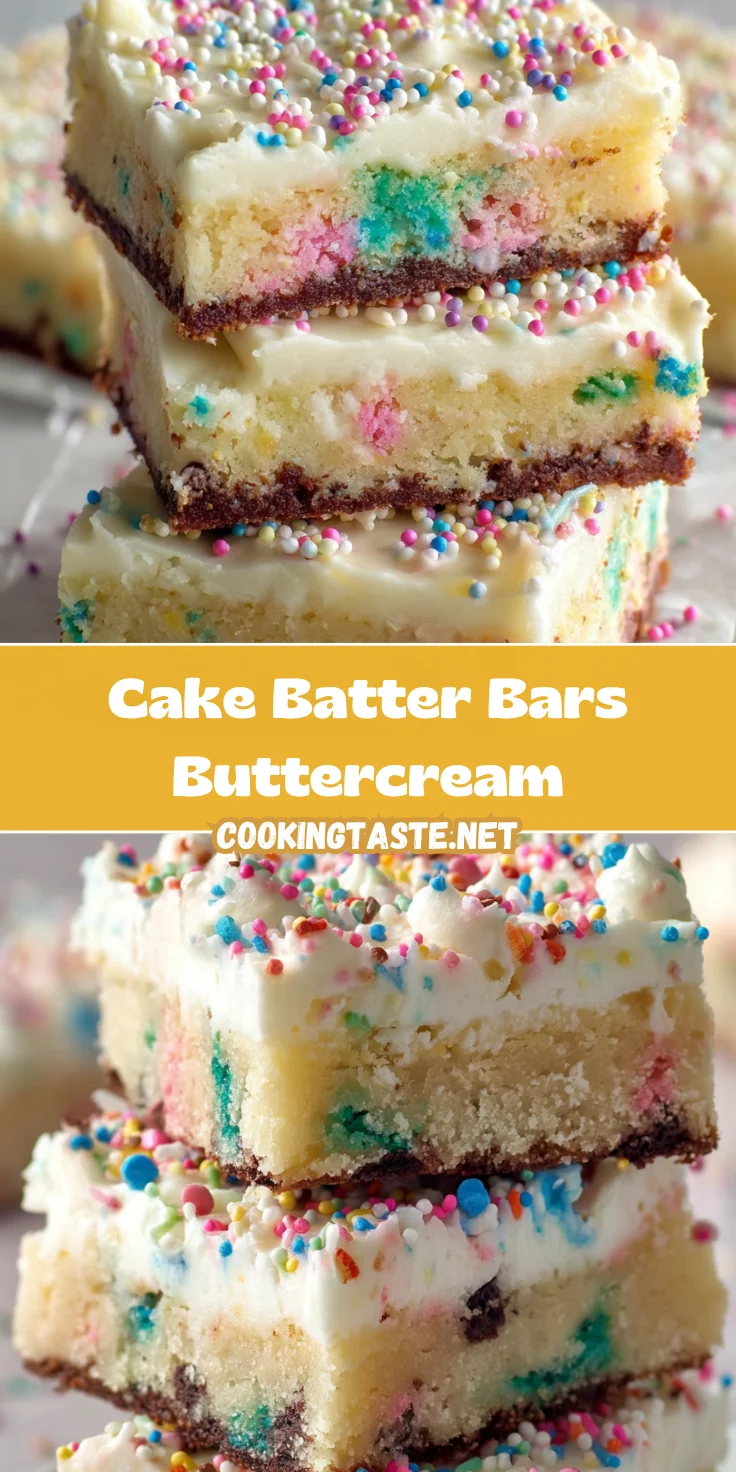 A sweet and colorful treat, these Cake Batter Bars are topped with a creamy buttercream frosting, making them a delightful dessert for any occasion.