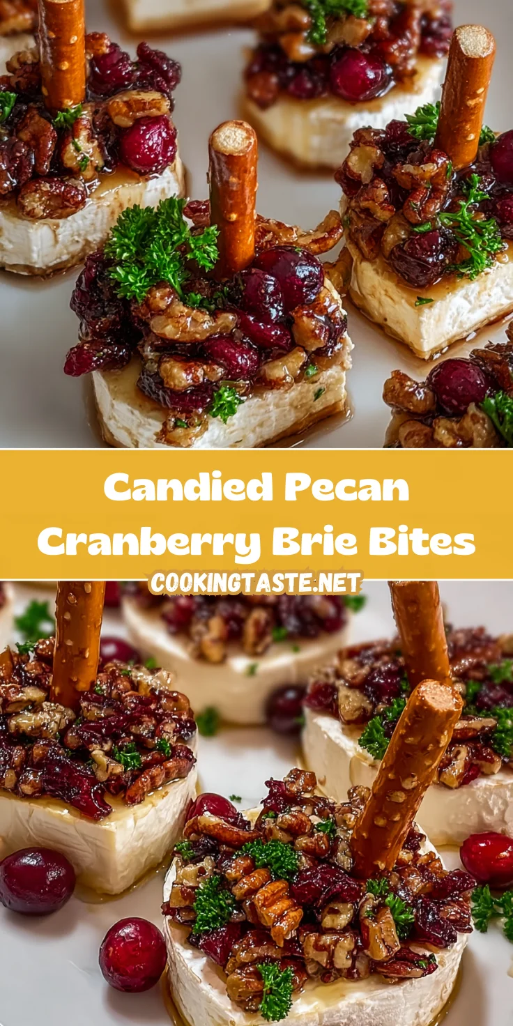 As a busy mom, I know how hectic life can get, especially when you’re trying to impress friends and family during the holidays. That’s why I’m thrilled to share my recipe for Candied Pecan Cranberry Brie Bites! These delightful little appetizers combine creamy Brie cheese with sweet candied pecans and tart cranberries, all on a crunchy pretzel stick.