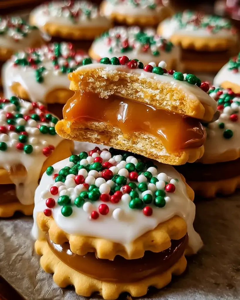 Caramel Ritz Cracker Christmas Cookies are a sweet and festive treat perfect for the holiday season, combining the crunch of Ritz crackers with a creamy caramel filling and a coat of white chocolate.