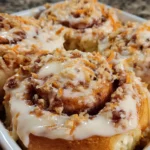 Delightful carrot cake cinnamon rolls that combine the flavors of carrot cake with the fluffy texture of cinnamon rolls, topped with a creamy frosting.
