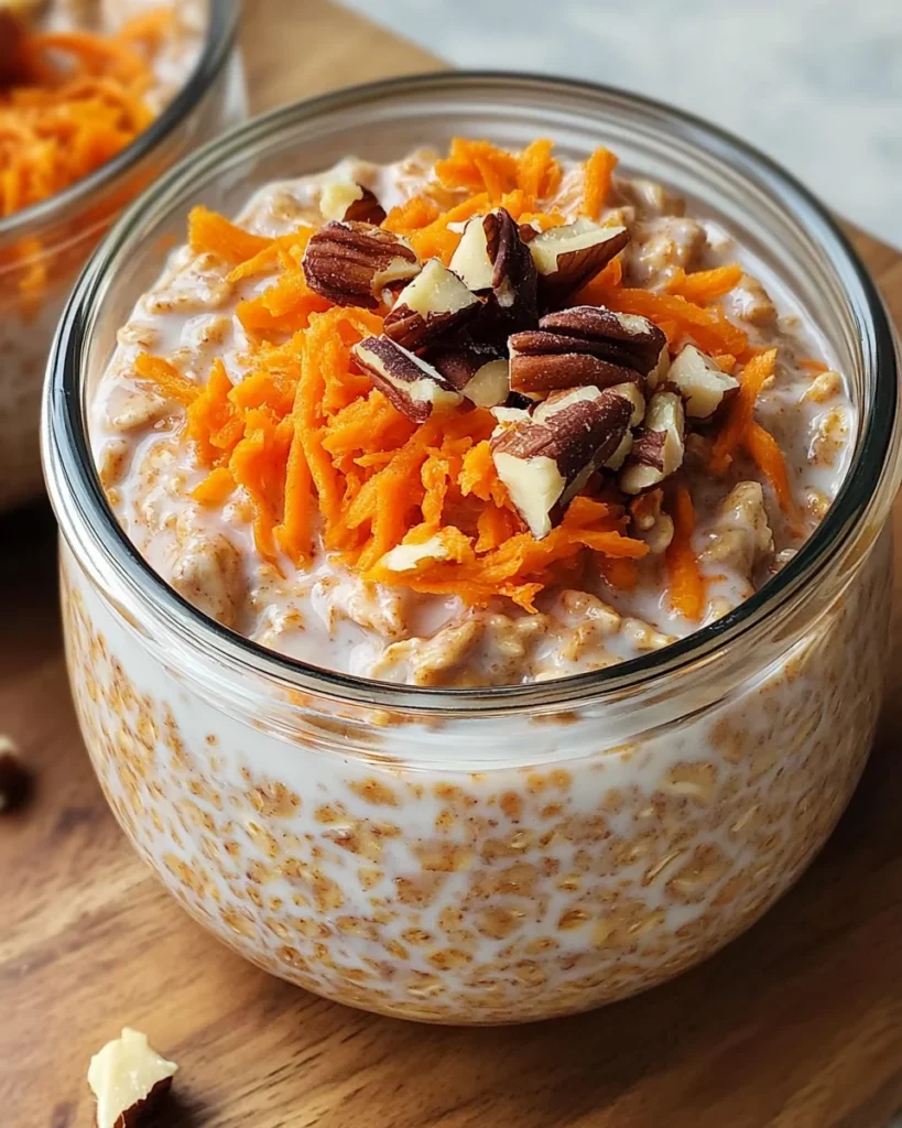A deliciously healthy breakfast option that combines the flavors of carrot cake with the convenience of overnight oats.