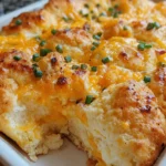 Now is the big moment! Carefully pour the egg mixture evenly over the biscuit base in your baking dish. You want to cover the entire surface so every bite is filled with that cheesy, savory goodness. Place it in the preheated oven and bake for 30-35 minutes. You’ll know it’s done when the eggs are set, and the top has that beautiful golden color!