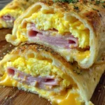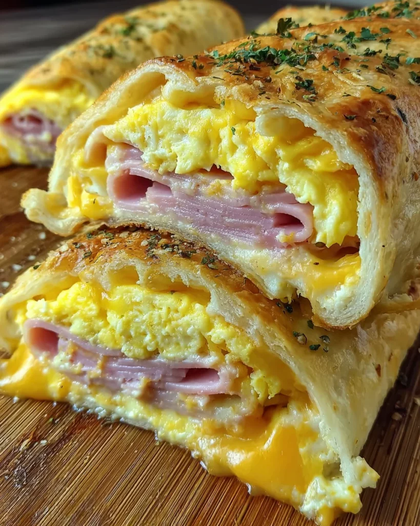 Cheese Ham Egg Rolls are a delicious breakfast treat combining savory ham, melted cheese, and scrambled eggs wrapped in pizza dough, baked to perfection.