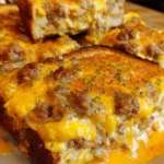 A savory and delightful breakfast dish featuring layers of cheese, sausage, and eggs baked to perfection.