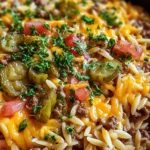 Looking for a cozy meal that brings smiles to the dinner table? Let me introduce you to my beloved Cheeseburger Orzo Delight. This dish masterfully combines the heartwarming flavors of a classic cheeseburger with the delightful twist of orzo pasta. It’s like a warm hug on a plate! Perfect for those hectic weeknights when you want something quick and delicious to whip up for your family. It’s a delightful dish that not only satisfies cravings but also makes mealtime fun. Trust me, your loved ones will be asking for seconds!