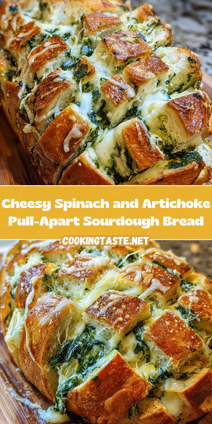 Cheesy Spinach and Artichoke Pull-Apart Sourdough Bread is a deliciously gooey and cheesy appetizer that combines the rich flavors of artichokes and spinach, perfect for sharing.