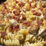 Chicken Bacon Ranch Pasta is a creamy and delicious dish that combines tender chicken, crispy bacon, and flavorful ranch seasoning with pasta and Alfredo sauce.