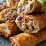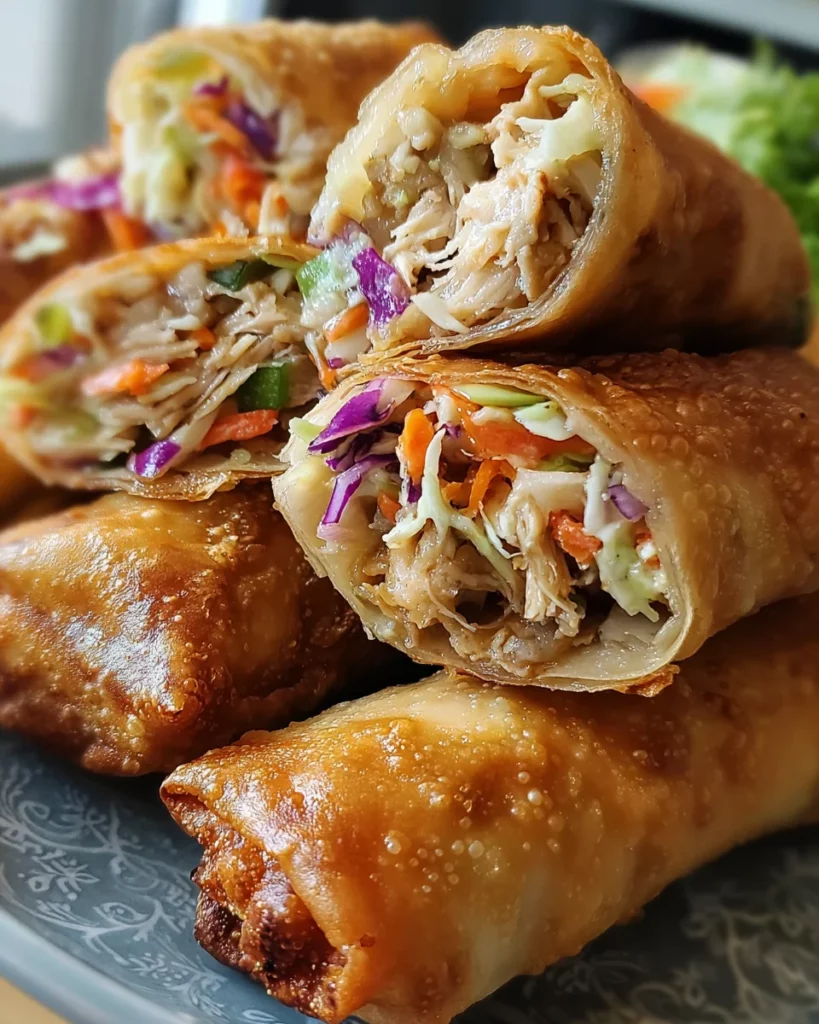 Crispy chicken coleslaw egg rolls filled with a delightful mixture of shredded chicken and fresh coleslaw.