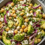 A refreshing and nutritious salad made with chickpeas, avocado, and feta cheese, perfect for a light meal or side dish.