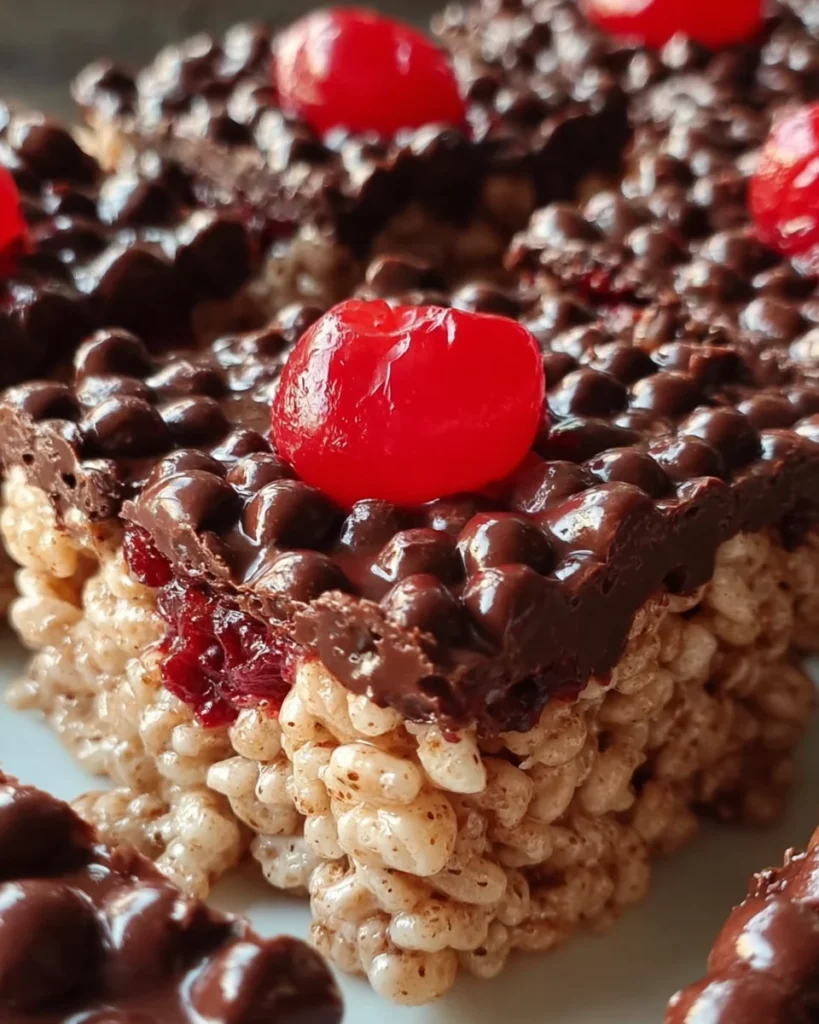 Deliciously sweet and crunchy Chocolate Covered Cherry Rice Krispies Treats that combine marshmallows, cherries, and chocolate for a delightful treat.
