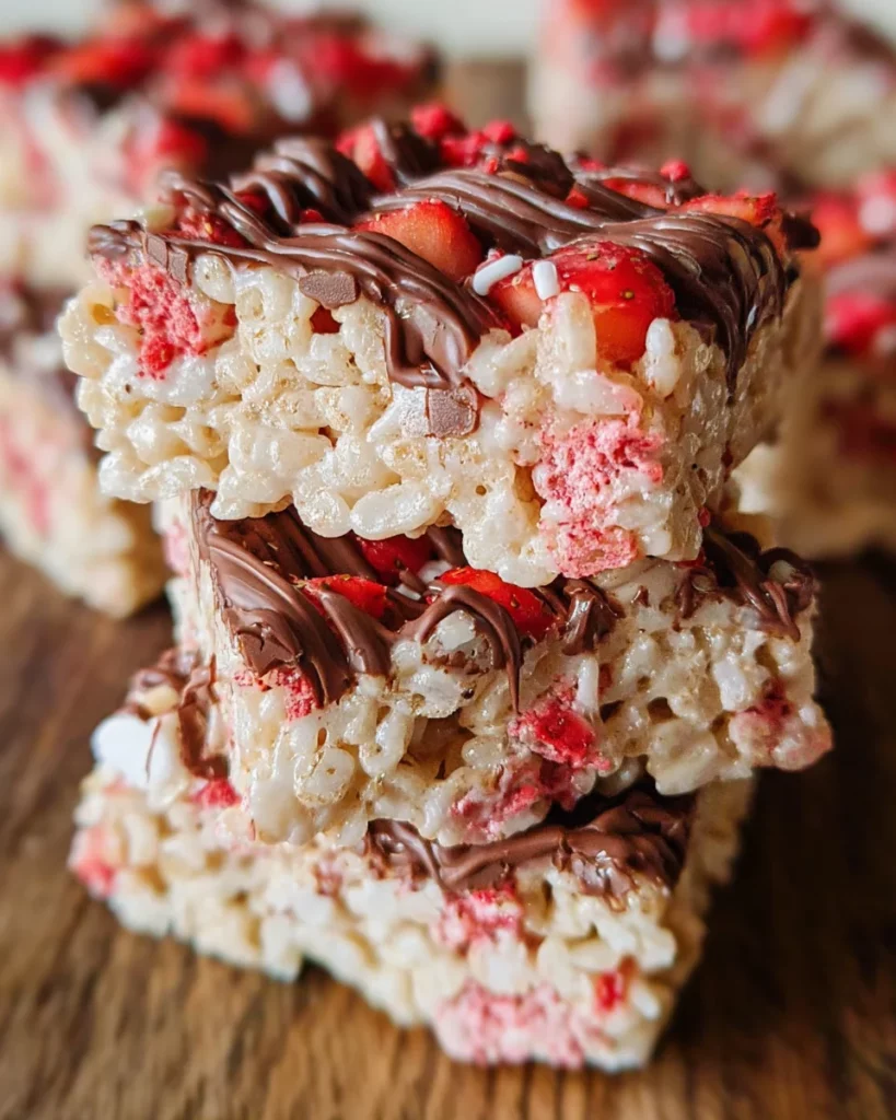 Creating these Chocolate Strawberry Rice Krispy Treats is more than just preparing a dessert—it’s about crafting moments of joy and connection with loved ones. The happiness on their faces when they take a bite is truly priceless! This recipe is not just easy to follow; it’s a fun way to incorporate your family into the kitchen and make cherished memories together. I often find myself reminiscing about the laughter and the delicious aroma that fills the air. So gather your ingredients and dive in—these treats are sure to become a regular part of your sweet repertoire!