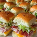 Chopped Club Sliders Bites are a delicious combination of savory meats, fresh vegetables, and melted cheese, all piled between buttery Hawaiian rolls, making them a perfect snack or party appetizer.