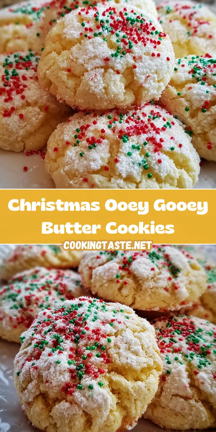 These Christmas Ooey Gooey Butter Cookies are soft, chewy, and topped with festive sprinkles, perfect for impressing your holiday guests.