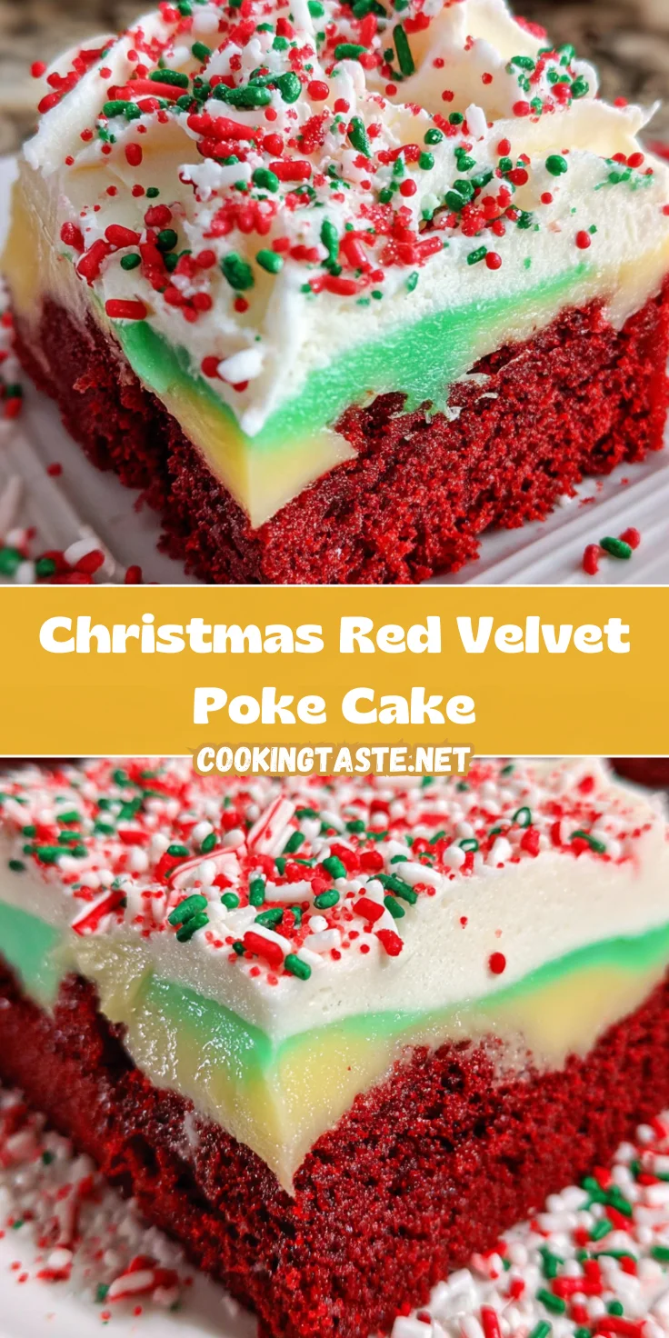 A festive and delicious red velvet poke cake perfect for Christmas celebrations.