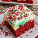 When you’re ready to serve, sprinkle the red and white Christmas sprinkles over the top for that sparkle! Slice into this festive masterpiece, and watch the smiles spread around the table. This Christmas Red Velvet Poke Cake isn’t just dessert; it’s a memory-making treat!