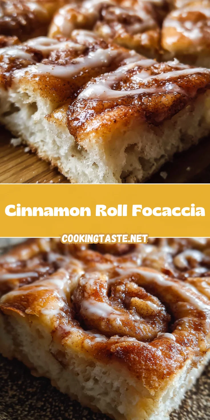 As you can see, this Cinnamon Roll Focaccia is more than just a dessert; it’s an experience filled with warmth and love. Baking this fluffy, sweet creation can turn an ordinary day into something extraordinary. The aroma swirling through your kitchen will invite family and friends to gather around, laughing and sharing memories over each delectable square. The joy on their faces as they savor this delightful treat is simply priceless. So, dive into this culinary adventure, and let the magic of homemade comfort food wrap around you like a cozy blanket. Happy baking!