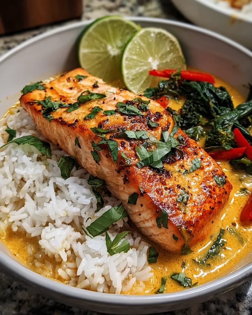 - Vegetarian Option: Substitute the salmon with hearty tofu or chickpeas for a plant-based twist. The flavors of the coconut curry sauce still shine through!