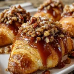 Once the croissants are out, give them a few minutes to cool. Then, drizzle each one with caramel sauce. This adds the final touch of sweetness that brings everything together. These little bites are now a masterpiece of flavor and texture, ready to impress everyone!