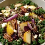 Don’t forget the toasted pecans and crumbled feta cheese! These ingredients make the Cranberry Apple Quinoa Salad a flavor powerhouse.