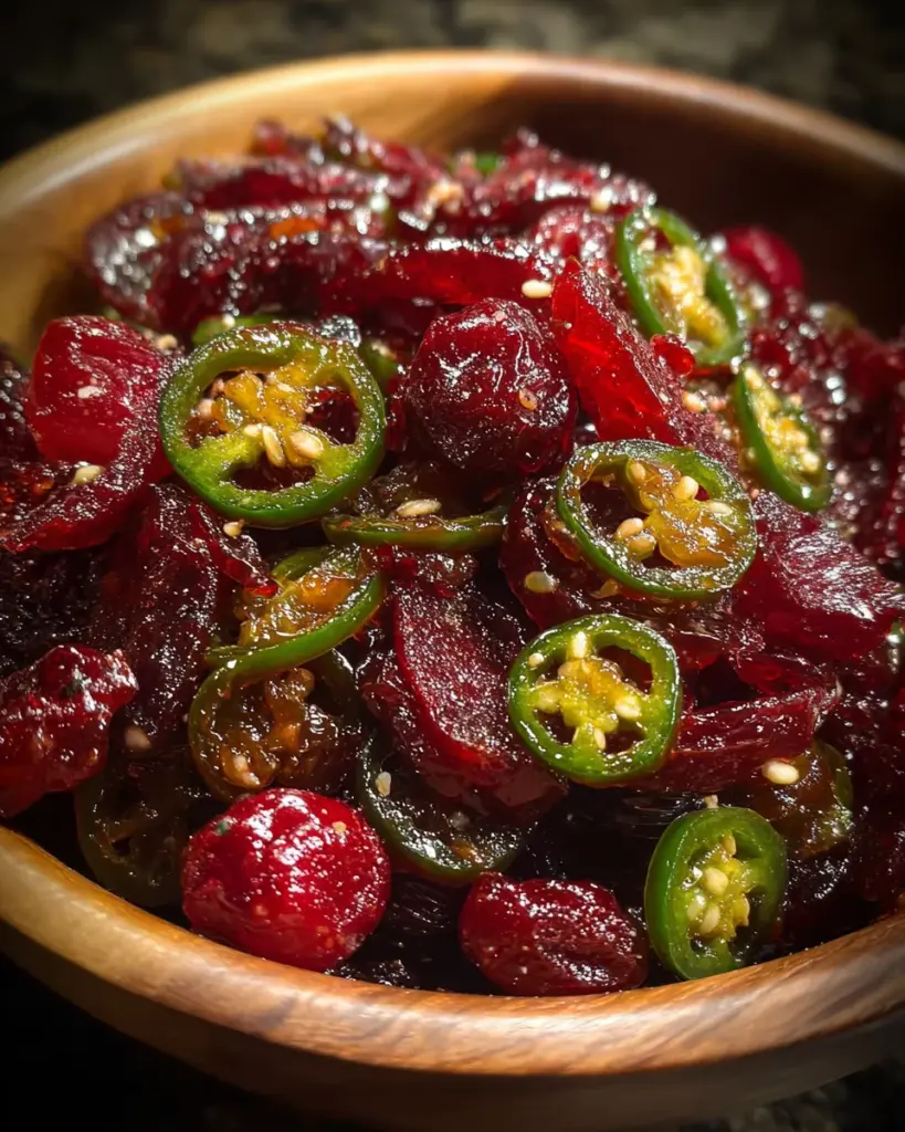 Cranberry Jalapeño Cowboy Candy is a sweet and spicy delight that combines the tartness of fresh cranberries with the heat of jalapeños, creating a unique flavor experience.