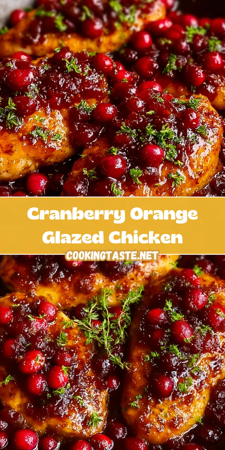A delicious and flavorful dish of chicken glazed with a sweet and tangy cranberry-orange sauce, perfect for a cozy dinner.