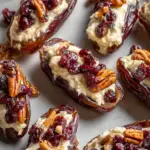Delightful stuffed dates filled with creamy cheese, cranberries, and pecans.