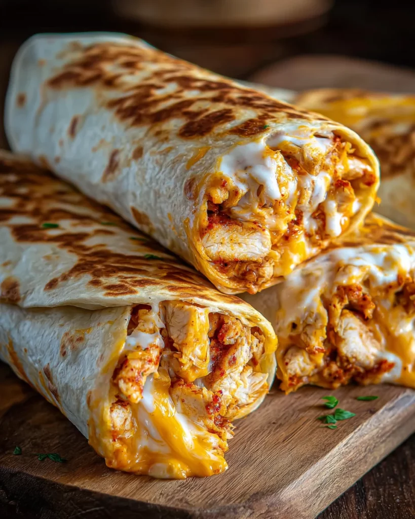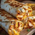 Now, take your large flour tortillas and lay them out flat on a clean surface. In the center of each, evenly distribute the shredded or diced chicken, making sure it’s generous but not overflowing. Next, sprinkle that luscious cheddar cheese over the chicken. Finally, drizzle your delicious hot sauce-ranch mixture over all the layers. This fusion of flavors is what makes these wraps so irresistible!