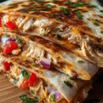 Crispy chicken quesadillas that are the ultimate snack! These quesadillas are filled with shredded chicken, fresh vegetables, and a blend of cheese, all encased in a golden, crispy tortilla.