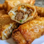 Delicious and crispy golden brown egg rolls filled with a savory mixture of beef, vegetables, and flavorful sauces. Perfect for snacking or entertaining!