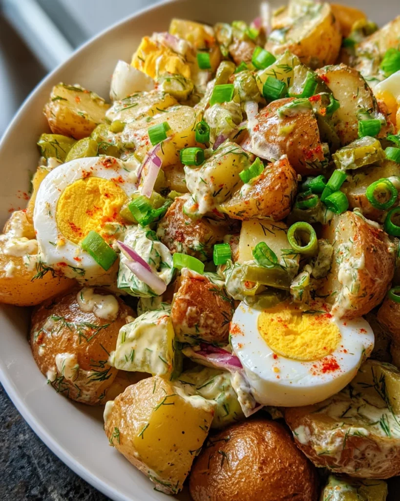 A delightful and crispy twist on traditional potato salad, featuring roasted potatoes and a creamy dressing.