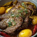 Crockpot Mississippi Pot Roast is a flavorful dish that combines tender chuck roast, tangy pepperoncini peppers, and a rich buttery sauce, perfect for family dinners.