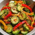 A refreshing and colorful salad made with crisp cucumbers and vibrant mini sweet peppers, seasoned to perfection.