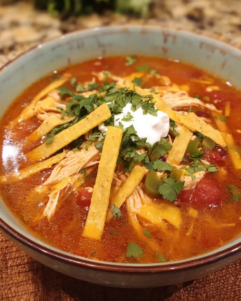 A flavorful twist on a classic soup, this Easy Chicken Tortilla Soup is hearty and satisfying with a blend of spices and toppings.