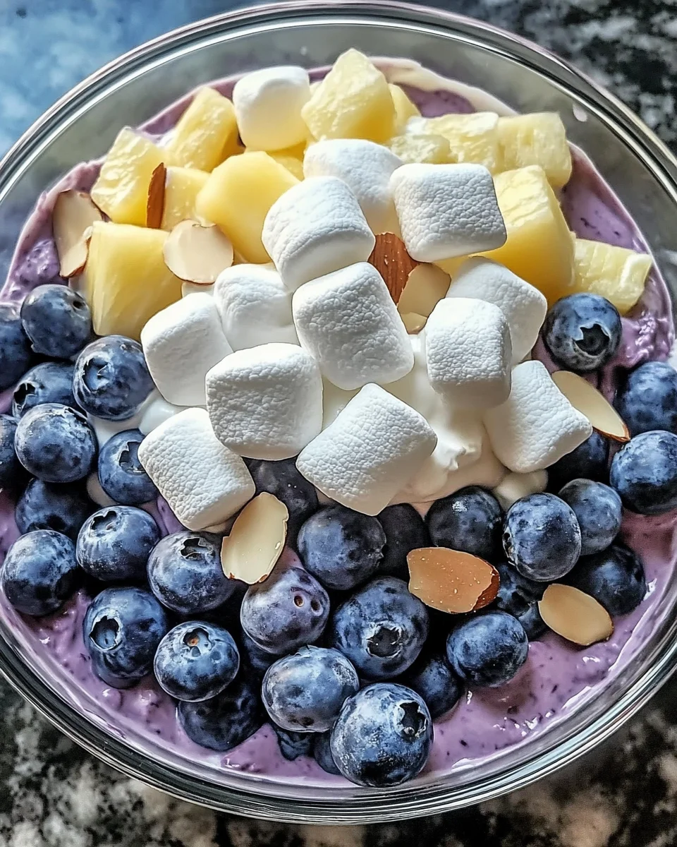 This Fluffy Blueberry Marshmallow is the perfect balance of sweet and creamy, making it a hit with everyone. It comes together in no time at all, which is a lifesaver for busy days. Plus, it’s versatile enough to serve as a dessert or a light snack. With its vibrant colors and irresistible flavors, it’s bound to brighten your day and impress your loved ones at any gathering.
